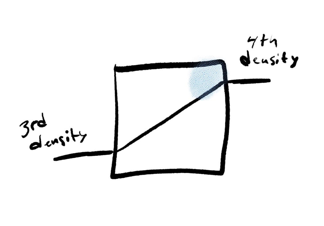 In my model, there is a square, and that square is your window of evolution. At the bottom left is the part of you that is most fused with third density patterns. Survival, money, control, attachment, the old paradigm. Then there is a diagonal line that rises from the bottom left toward the top right. That line is the ascension plane. And the higher you go along that incline, the more stuff comes up. Not because you are failing. Because you are rising, and whatever cannot come with you has to surface so it can be seen.